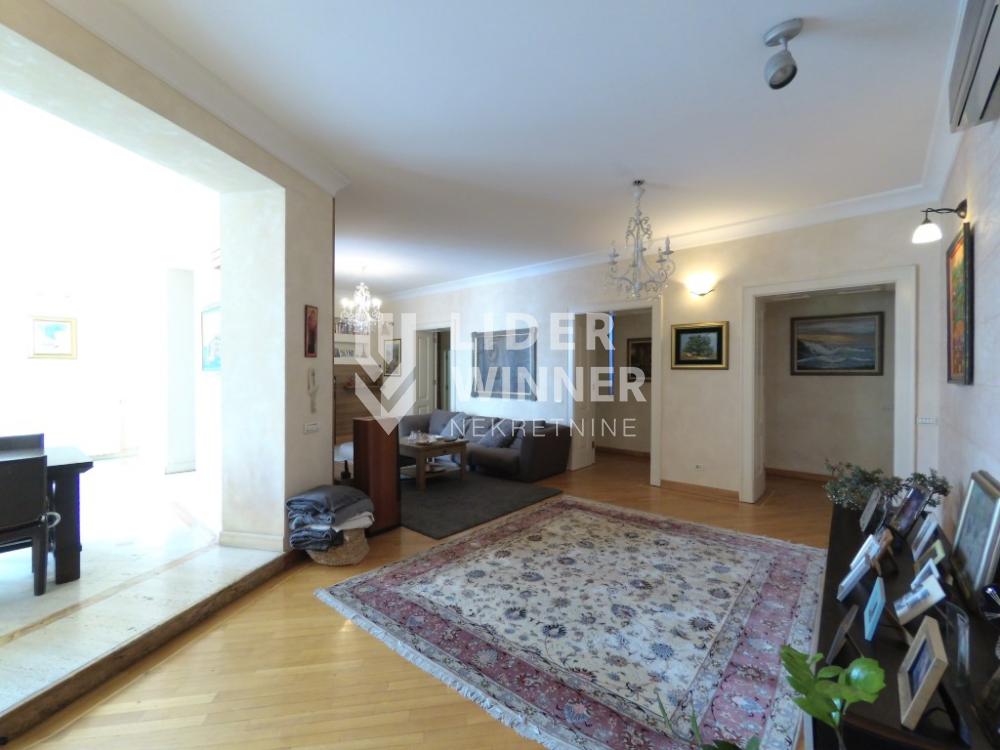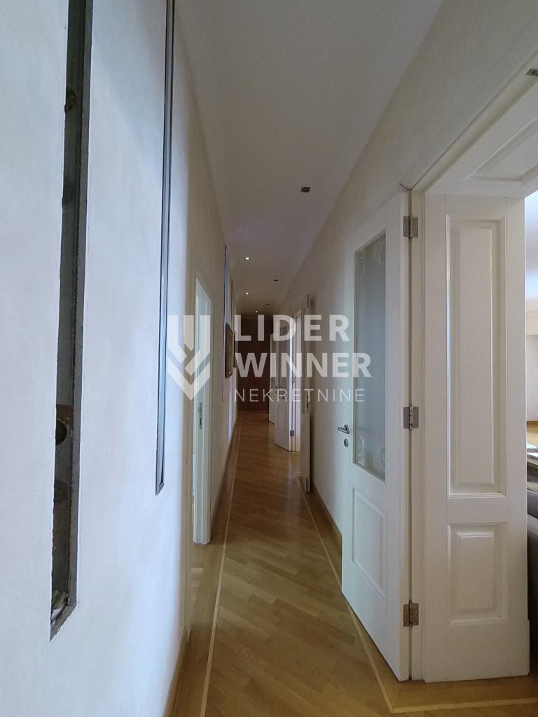 Izuzetan, prostran, salonski stan u strogom centru Vracara, na Slaviji u neposrednoj blizini Hrama Svetog Save. Stan je izuzetno svetao, nalazi se sam na 2. Spratu dobro odrzavane salonske zgrade . Stan ima dva hodnika, prostran dnevni boravak, trpezariju, kuhinju, tri spavaće sobe, tri kupatila i tri terase. Uknjižen je na 190m2.