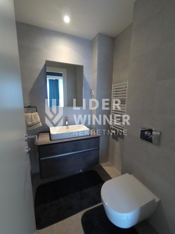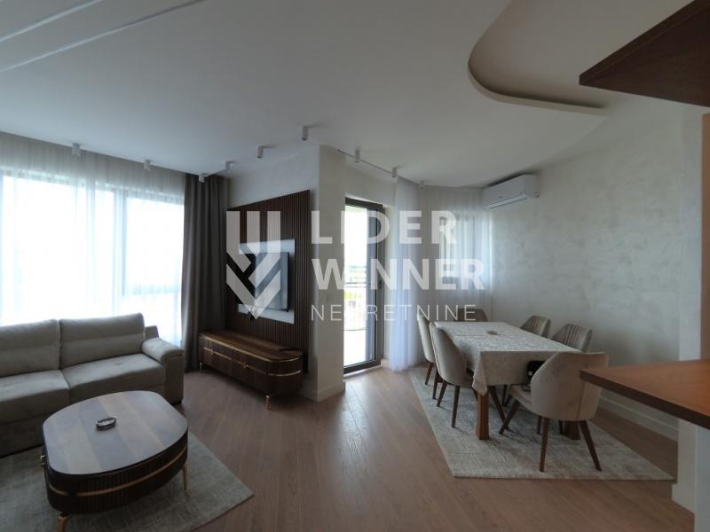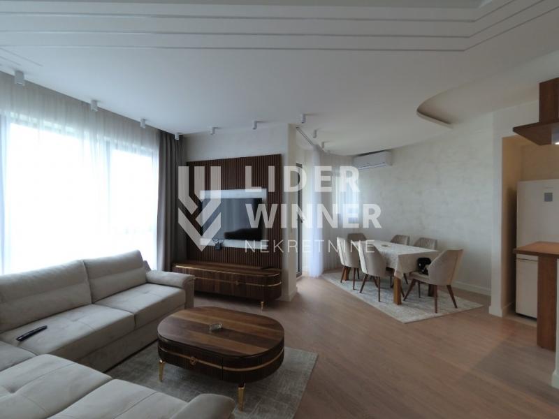 We rent a beautiful luxuriosly furnished apartment near the bank of the Sava, parks, restaurants, the largest shopping centar Gallery,promenade… The apartment is equipped with special care with the help of an architect where it was taken into account the selection of furniture and materials. Extremely pleasant, bright and calm. It consists of an entrance hall, kitchen, dinning room, living room, teracce with a beautiful view, a hallway separating the second room, the first bathroom, a master room with its own bathroom. It has specious wardrobes throughout the area. Heating is on a calorimetar and SBB for the next two years free of charge. It is rented with a garage space. agencijska provizija 50%
