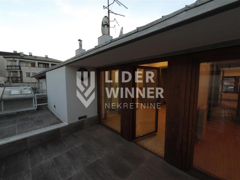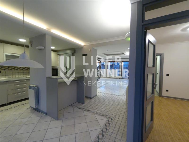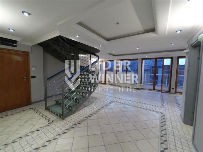 Retko u ponudi. Izuzetan 6.0, lux, duplex, u novijoj zgradi na prestižnoj lokaciji. Uknjižen na 167m2 a poseduje i više terasa čija je ukupna površina 22m2. Zgrada je sa centralnim grejanjem, liftom i video nadzorom. Na donjem nivou su prostrani dnevni boravak sa izlaskom na jednu terasu, kuhinja sa ugradnim elementima i belom tehnikom, trpezaija, ostava, jedna spavaća soba sa garderoberom i kupatilo. Na gornjem nivou se nalaze tri spavaće sobe od kojih jedna poseduje sopstveno kupatilo a druge dve imaju zajedničko, terasa, lođa a takođe i sauna sa dve tuš kabine. Stan se prodaje sa garažom koja ulazi u cenu stana. Alarmni sistem-Paradox. Izuzetno je svetao i dvostrano orijentisan.
