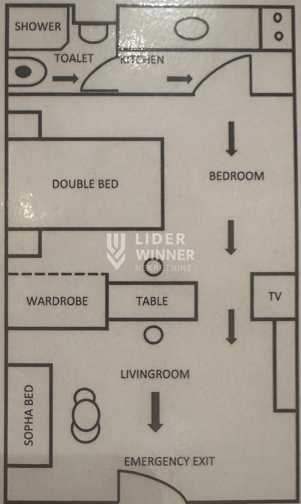 Stan je uknjižen kao poslovni prostor koji se nalazi u najmirnijem delu centra, potppuno opremljen i duži niz godina funkcioniše kao stan na dan koji je na platformi booking ocenjen izuzetno visokom ocenom. Može se nastaviti sa istom namenom pošto se prodaje namešten, a može se i promeniti namena u odnosu na potrebu: Kancelarijskog tipa, medicinska ili vetrinarska ordinacija, komzmetičko-frizerski salon, itd…