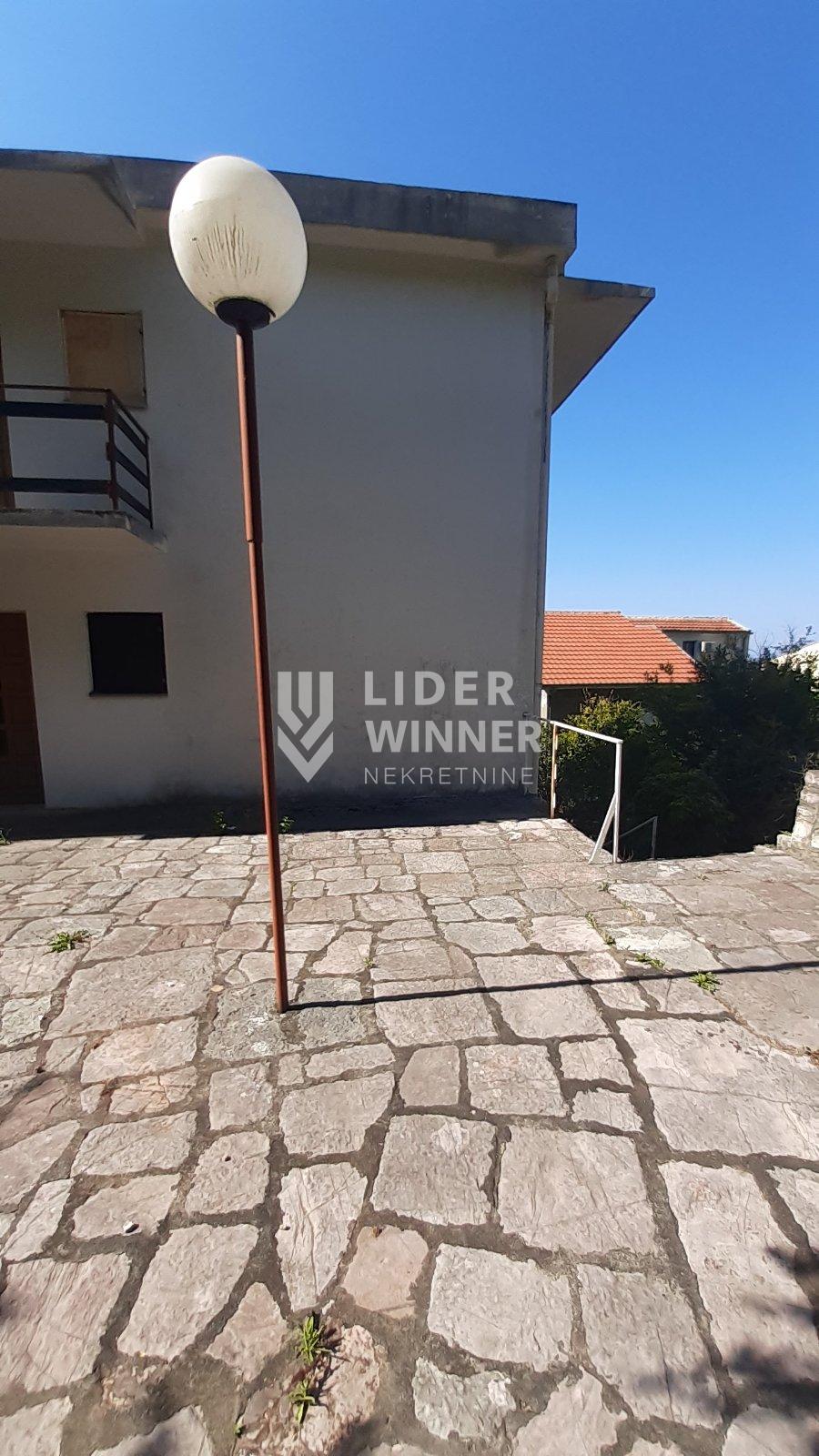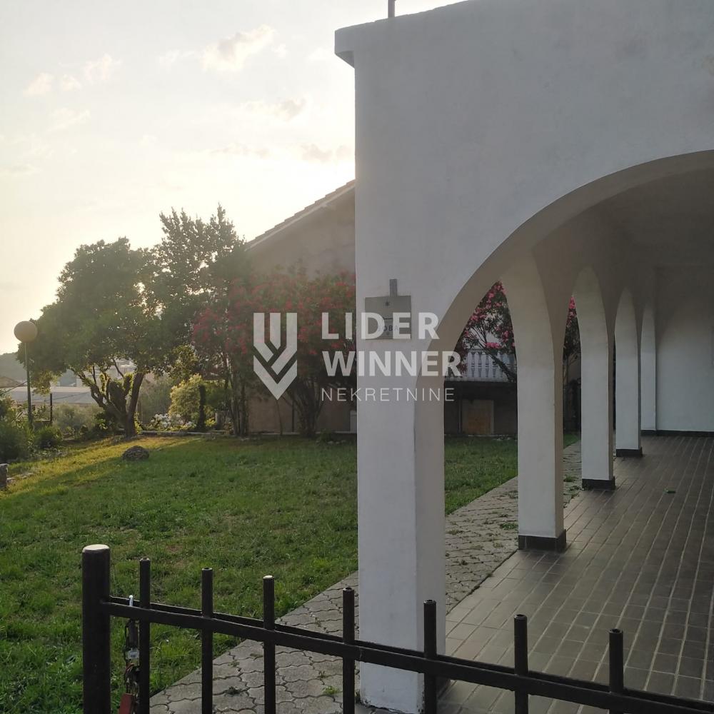 Ispred kuće je veliki travnjak a iza velika terasa i vinograd.