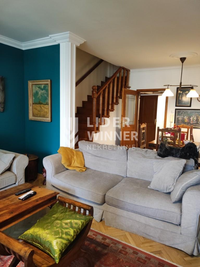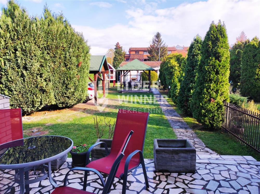 Lep kuća na tri nivoa + polusuteren i predivnim ograđenim placem sa letnjikovcem, garažom za dva vozila i jednim natkrivenim parking mestom.
