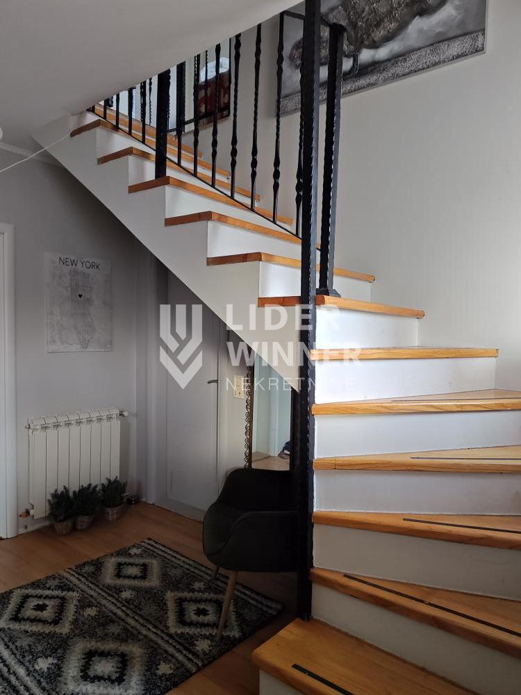 Unutrarsnje stepenice vode do lepo osmisljene galerije iz koje se ide u dve spavace sobe i kupatilo; manja soba ima izlaz na terasu od 10m2.