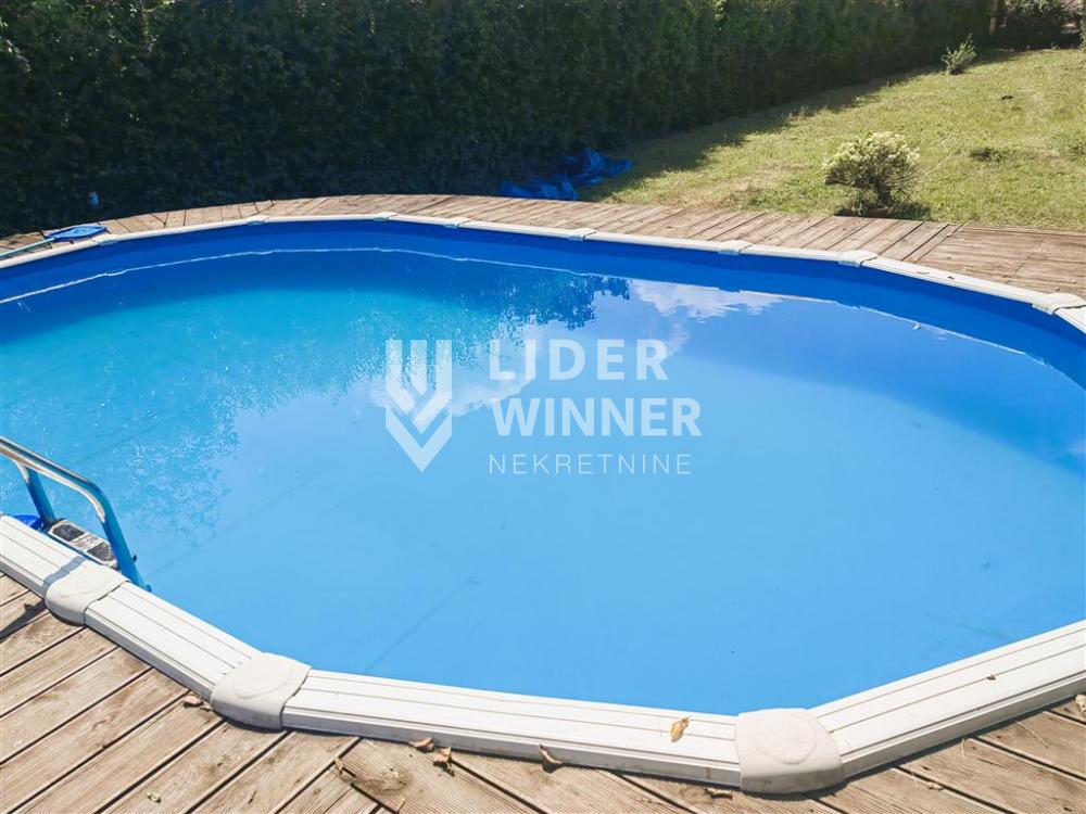 Iza pomocnog objekta nalazi se bazen 7m x 4m x 1,2m sa dekingom od 100m2 i garniturom za sedenje.