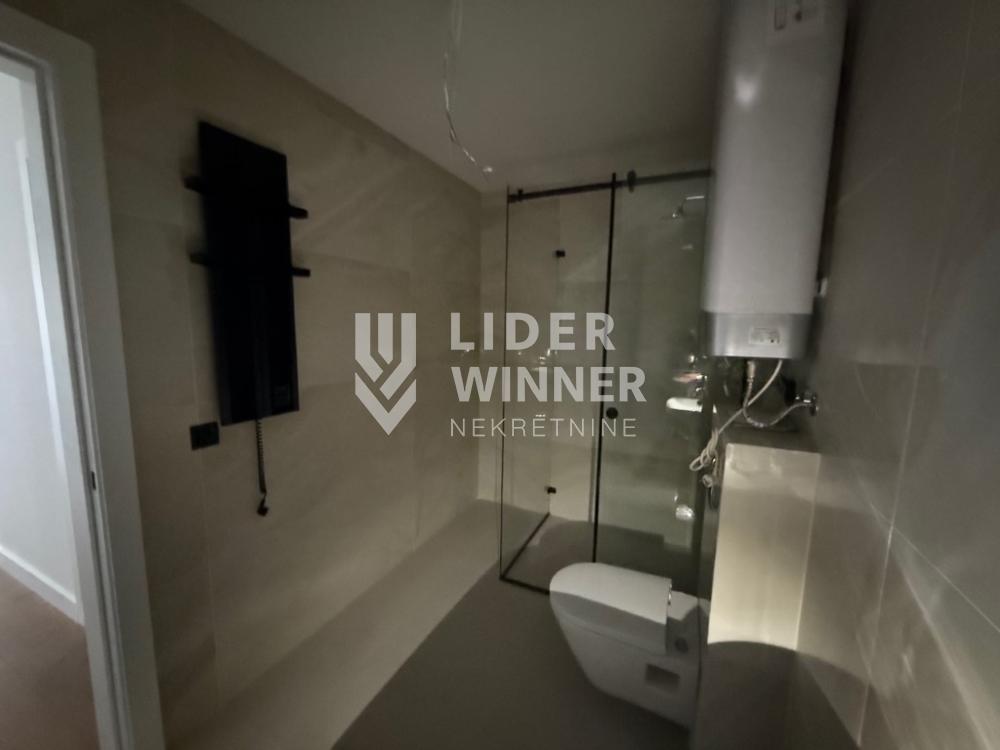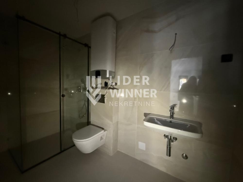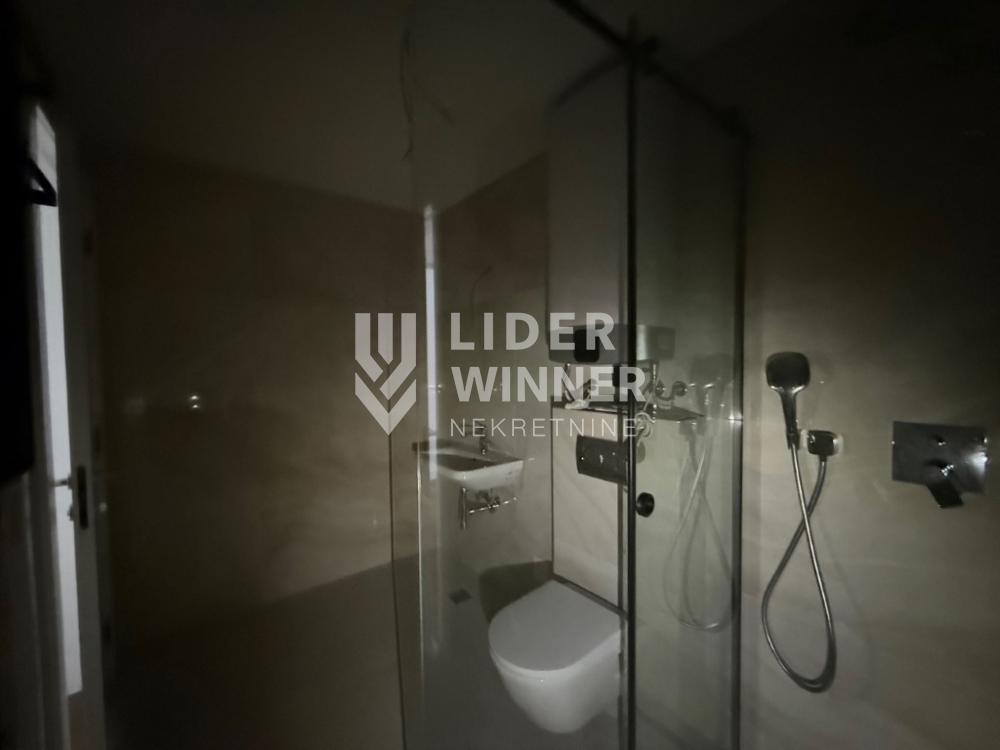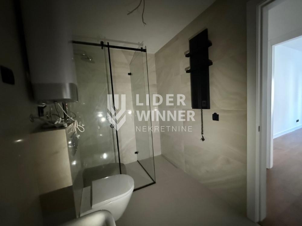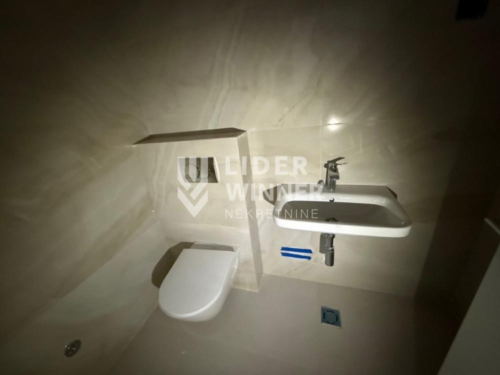 Pod je od troslojnog hrastovogparketa 1.klase širokih dimenzija, keramika italijanska, alu-drvo stolarija u kupatilima ugradni monoblokovi.