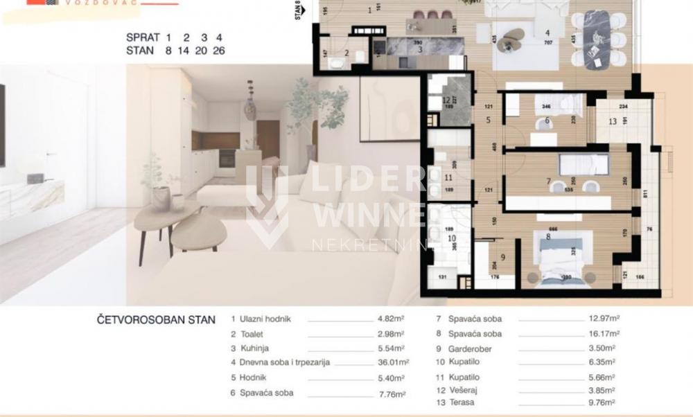Stan je izuzetno prostran sa odličnim rasporedom.