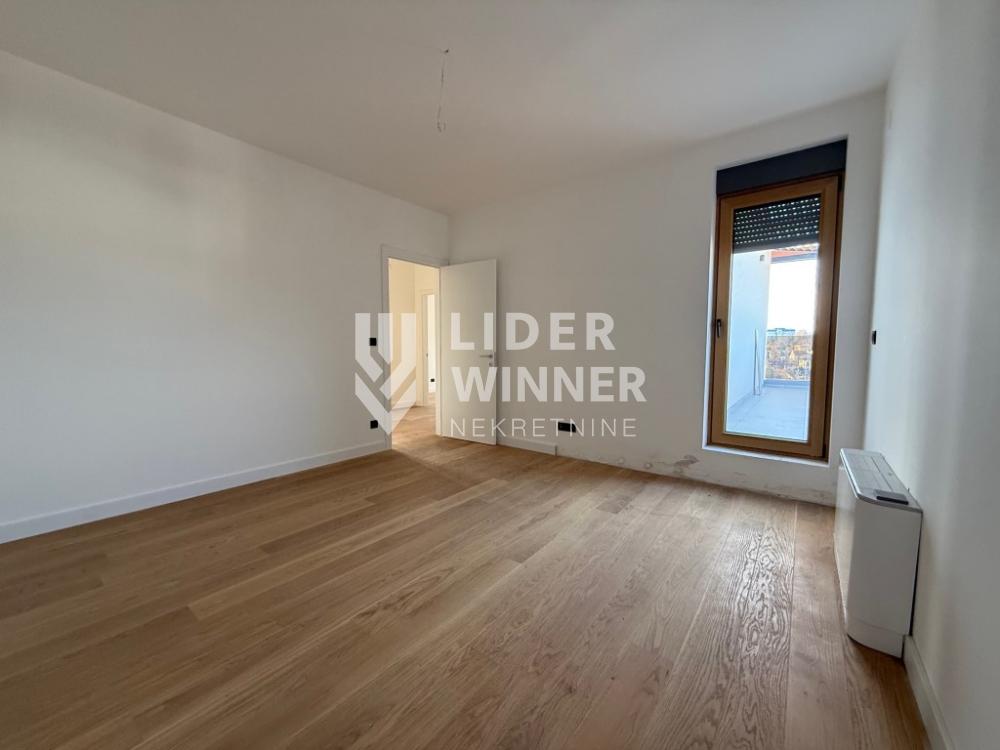 Po strukturi petosoban. Terasa je prostrana i pruža divan pogled. Jedna od soba ima sopstvenu terasu.