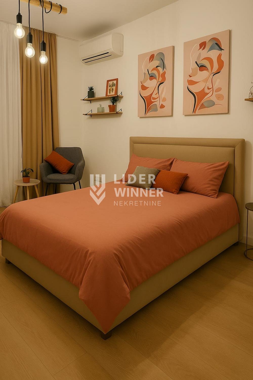 Sastoji se iz jedne sobe sa kuhinjom i trpezarijom, kupatila, ostave i terase. Stan je useljiv odmah. agencijska provizija 50%