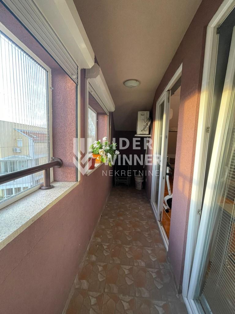 Odličan trosoban stan u blizini okretnice 27e. Novija gradnja, renoviran, 4. sprat bez lifta, eg, zastakljena terasa, uknjižen i useljiv po dogovoru. Prostorije; predsoblje, kuhinja sa šankom, trpezarijsko- dnevni boraval, 2 spavaće sobe, kupatilo, terasa. agencijska provizija 2%
