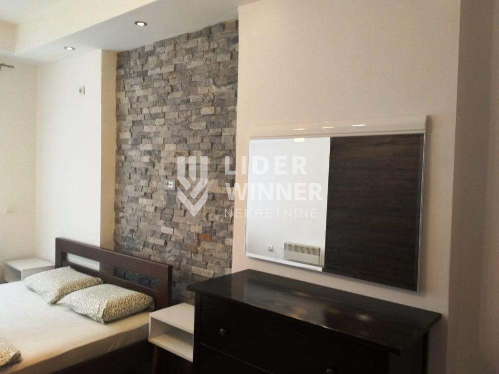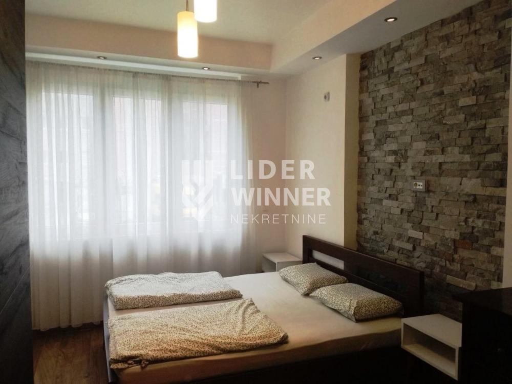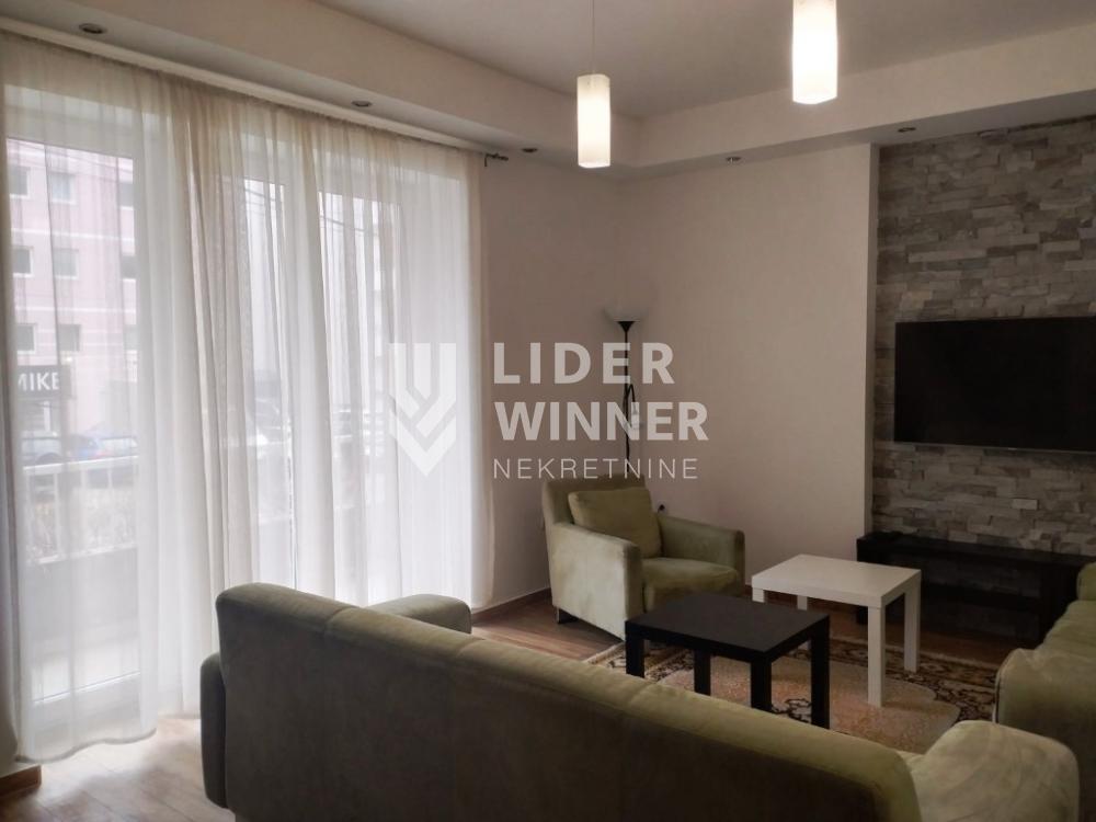 Prostrana dnevna soba s velikom natkrivenom terasom okrenutom ka Bulevaru, dve spavaće sobe 15m² i 9,5m², te zasebna kuhinja sa manjom natkrivenom terasom.