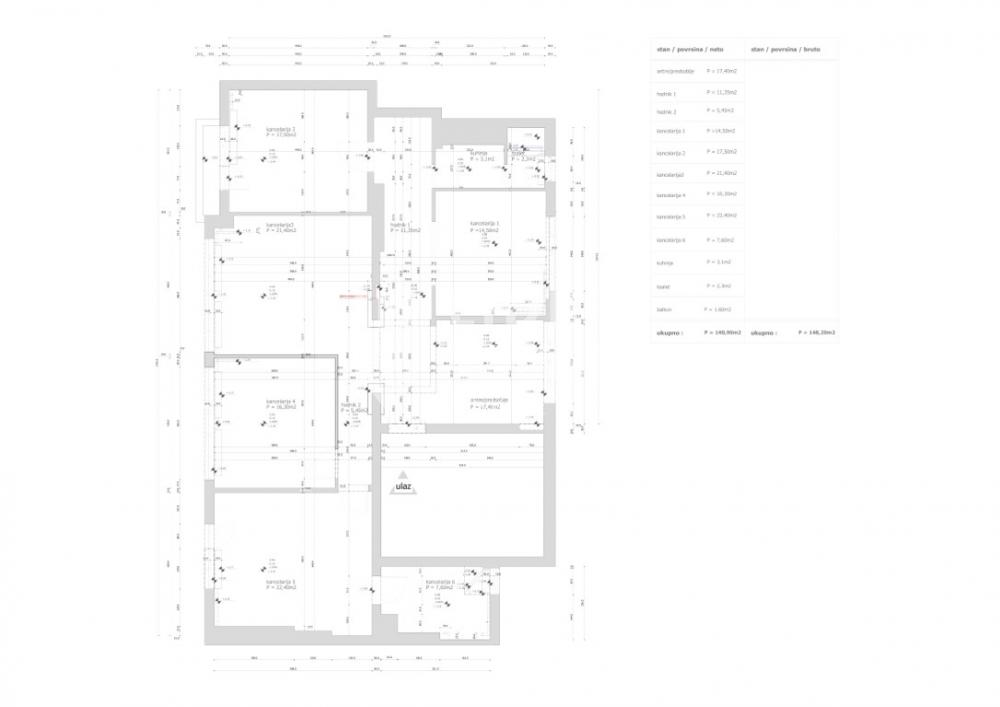 Uknjiženo kao poslovni prostor ali se može vrlo lepo adaptirati u 4.5 stan sa 2 kupatila. Odlična lokacija, prostor je svetao, dvostrano orijentisan, u predratnoj zgradi sa mermernim ulazom agencijska provizija 2%