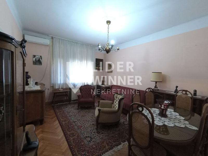 Na odličnoj lokaciji prodaje se komforan 3.0 stan u izvornom stanju u predratnoj zgradi. Stan je salonskog tipa, dvostrano orijentisan i komforan. Iz stana se izlazi u lepo dvorište sa mogućnošću parkinga. Stan poseduje i podrum od 20 – tak m2. Uknjižen i odmah useljiv. Retko u ponudi. PROSTORIJE: ulazni antre, dnevna soba, 2 spavaće sobe, kuhinja, kupatilo, 2 ostave. agencijska provizija 2%