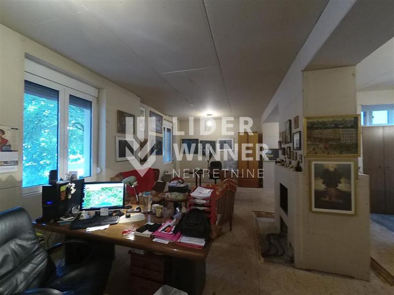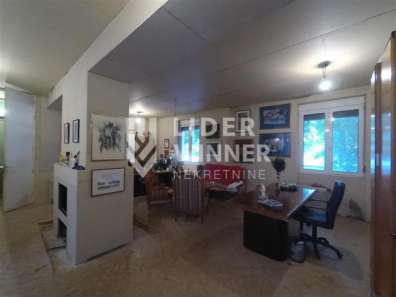 Prosotrije: predsoblje, kuhinja, zastakljena lođa, dnevna soba sa kaminom, radna soba, trpezarija, kupatilo, spavaća soba + garderober. agencijska provizija 2%