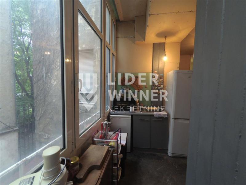 Predratna zgrada iz 1932 godine, uredan ulaz, stan uknjižen na 72m2, meren 90m2. Lođa zastakljena, integrisana u stambenu površinu. Tavanica „Avramenko“ visina 3.5m. 2007 godine je odrađena kompletna nova elektro i vodovodna instalacija, kao i instalacije za etažno grejanje. Zidovi su mahom uklonjeni tako da imamo otvoren unutrašnji prosotr koji se može vratiti u prvobitno stanje. Odrađeno je ozvučenje i optički kablovi za internet. Nova spoljna stolarija kao i instalacije za podno grejanje u kupatilu. Postoji i pripadajući podrum.