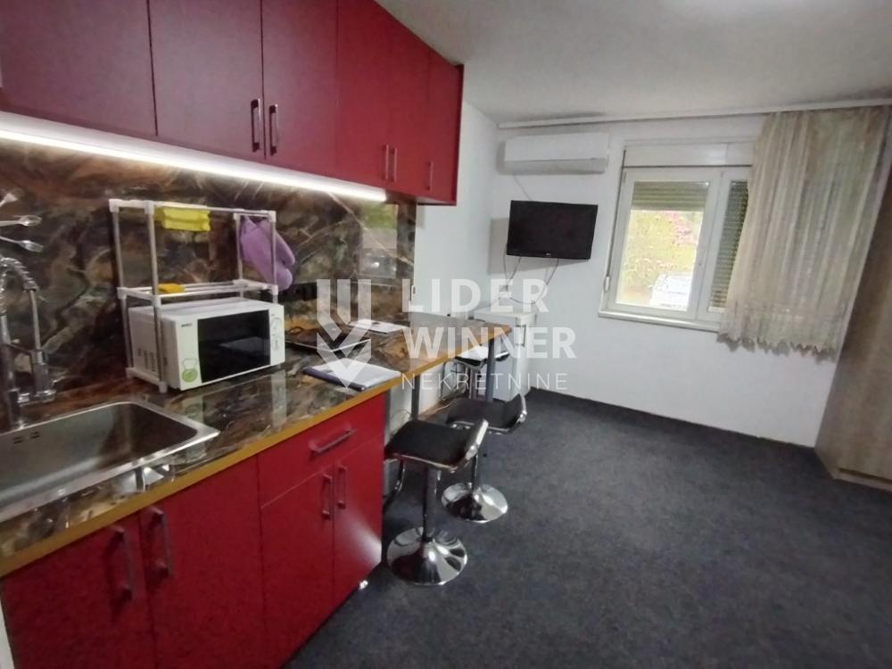Prostorije: predsoblje, prostrana soba sa kuhinjom i trpezarijom, kupatilo.