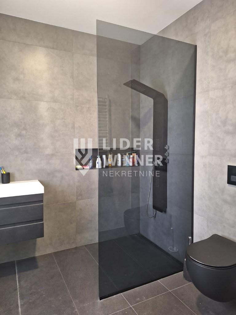 Ima kvalitetnu rasvetu i elektro galanteriju. Sve instalacije su nove. Topla voda je na gas, grejanje na gas i svaki sprat ima sopstveni termostat za podešavanje temperature. Podno grejanje je svuda gde je granit na podu. Kuhinja je od medijapana, sa BLUM mehanizmima, „soft close“, svetla na senzor, sudopera 80cm, šporet Oranier (4 ringle u liniji sa ugradjenim aspiratorom). Ormani su rađeni po meri sa ugradnim svetlima na senzor, široka ulazna sigurnosna vrata, „safe lock“ mehanizam.