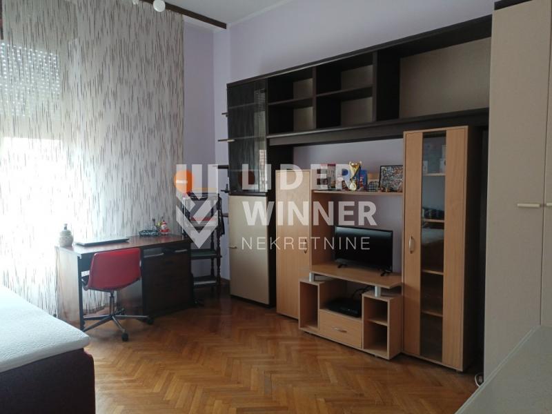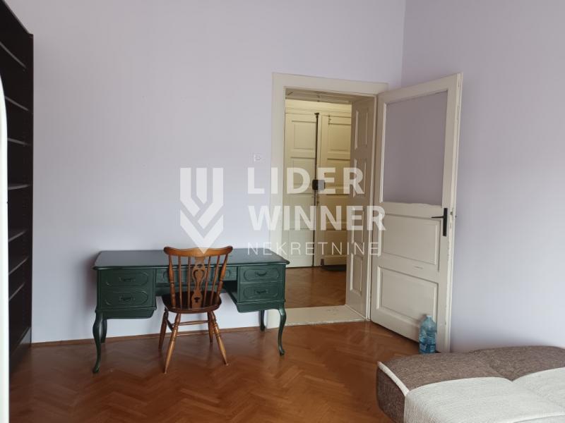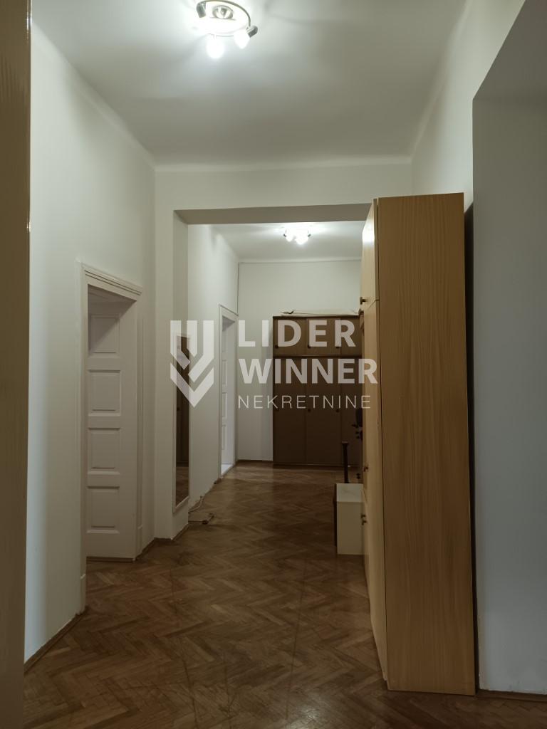 Klasičan salonski stan u centru, u dvorišnom krilu zgrade iz 1923-godine, preko puta parka Manjež. Stan se nalazi u mirnom okruženju sa zelenilom, izolovan od buke i saobraćaja. Po strukturi je troiposoban. Od prostorija stan ima hol, dnevni boravak sa trpezarijom i kuhinjom, terasu koja je orijentisana ka dvorištu, ostava, tri spavaće sobe i kupatilo. Stanu pripada podrum od 12 m2. Stan je dvostran, orjentacije jugozapad – severoistok. Stan je delimično renoviran 2019. godine. U stanu ostaje ugradna kuhinja. Uknjižen je na 100m2 sa urednom dokumentacijom i bez tereta. Odmah useljiv.