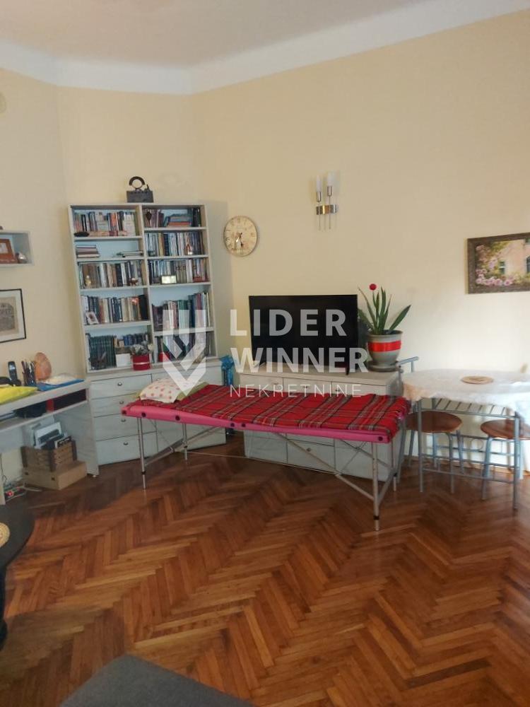 Korektan stan u blizini ulice Maksima Gorkog, predratna gradnja. Debeli zidovi. Odlična ponuda kao investicija. Parket riblja kost, dvostrano orijentisan, može zamena za manji uz doplatu. PROSTORIJE: predsoblje, kupatilo + wc, kuhinja, šank pult, dnevna soba, degažman, spavaća soba, terasa. agencijska provizija 2%