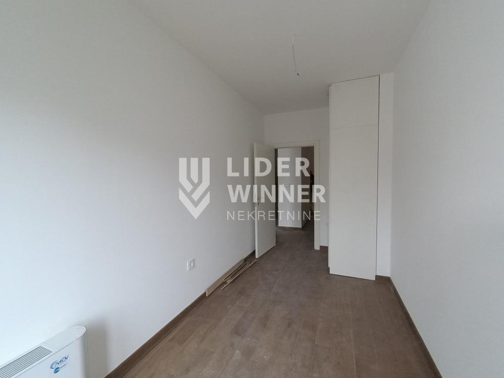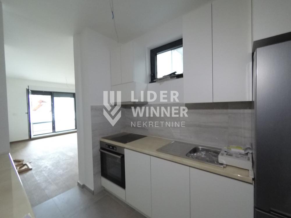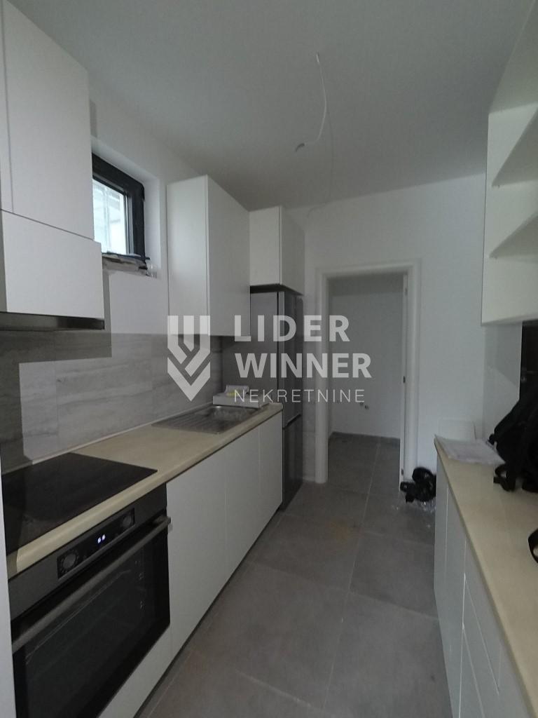 Stan je potpuno nov u fazi sredjivanja a trenutno polunamešten kuhinjom i garderoberima.