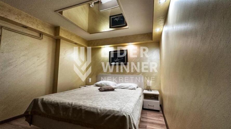 Jedna spavaca soba je na prvom nivou, druga u nivou ispod. Donji prostor sadrži ogledalo na plafonu iznad kreveta, što ovom apartmanu daje specifičan izgled prostranosti. U donji nivo se silazi polukuržnim stepeništem.