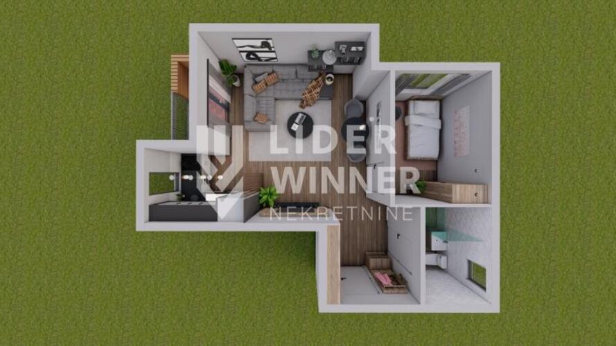 Sastoji se iz hodnika,kupatila,kuhinje,dnevne sobe sa trpezarijom,spavaće s.,terase. Bez provizije za kupca